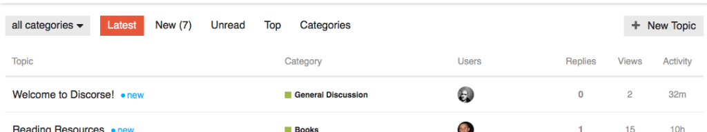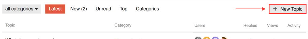 If you’d like to start a new conversation within the forum, simply click “New Topic” in the upper right hand corner: