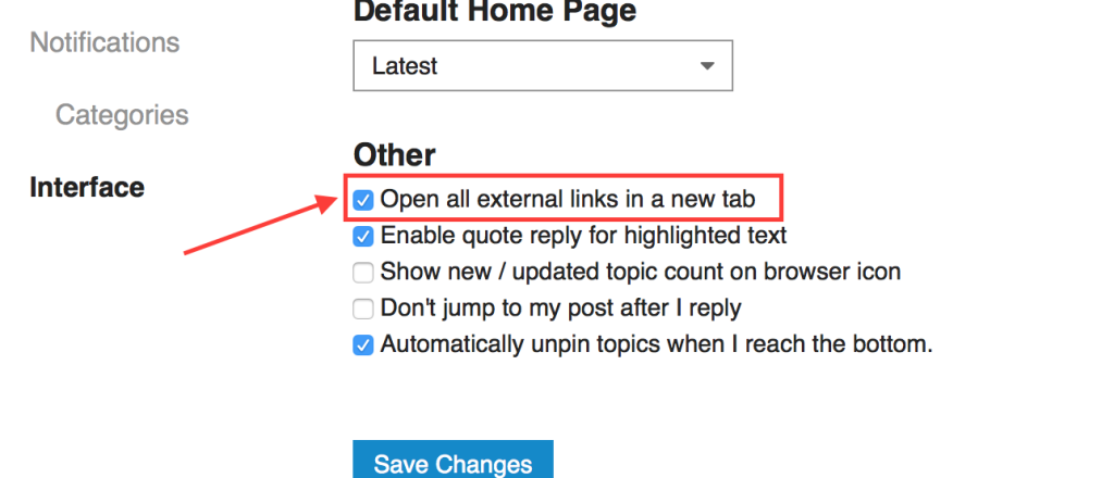 Another setting that our members like to change is having links open in a new window. This prevents you from having to toggle back and forth between links you click and the conversations you’re having in the forum.