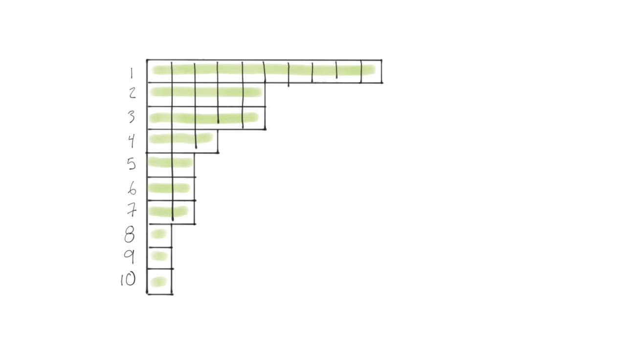 Let’s look at an example. Say we’re working on 10 projects. We have priorities that we try to focus on, but we also give the other projects a decent effort. Let’s say we allocate our 32 blocks of energy to our 10 projects as follows: